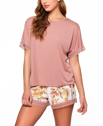 Women's 2pc. Soft Pajama Set Trimmed In Lace In Rose