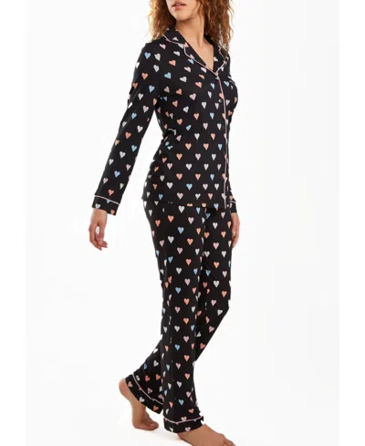 Women's Tobey Button Down Modal Pajama Pant Set With Pink Contrast Trim, 2 Piece In Pink-black