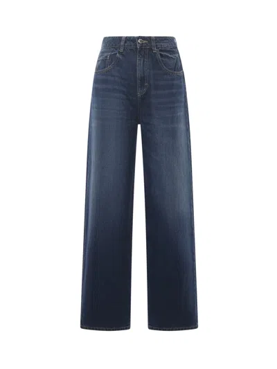Bea Blue Jeans With Wide Leg And Logo Patch On The Rear In Denim Woman
