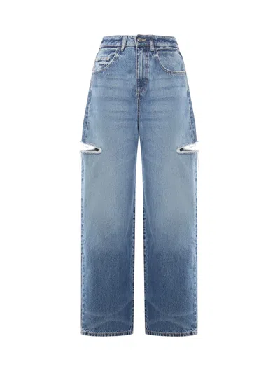 Poppy Blue Jeans With Logo Patch On The Rear And Ripped Details In Denim Woman