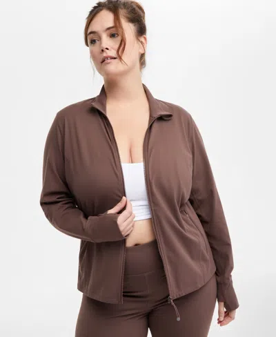 Plus Size Soft Flex Solid Full-zip Jacket, Created For Macy's In Brownie