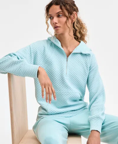 Women's Relaxed Quilted Half-zip Hoodie, Macy's Exclusive In Blue