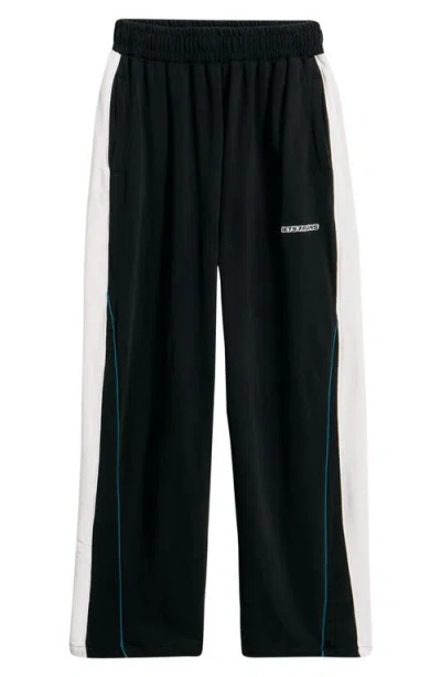 Cotton Fleece Wide Leg Joggers In Black