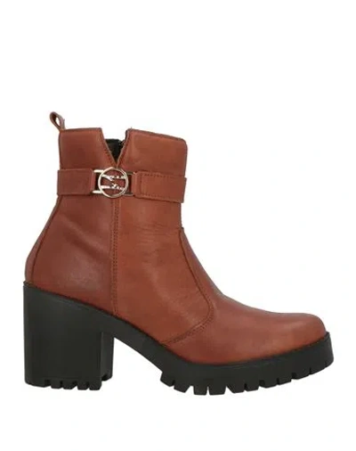Woman Ankle Boots Tan Size 8 Leather In Brown