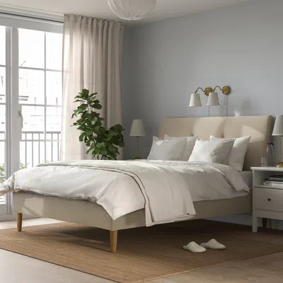 Idanäs Upholstered Bed Frame, Naggen Beige, Queen In Neutral