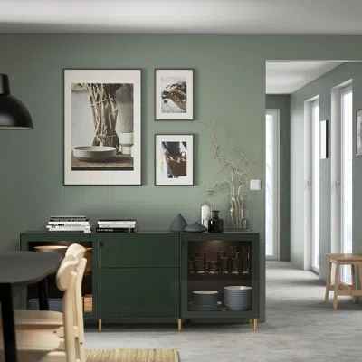 Bestå Storage Combination With Drawers, Black-brown Selsviken/ösarp/dark Olive-green Clear Glass, 70