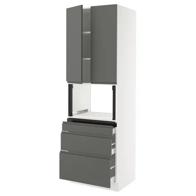 Sektion / Maximera High Cabinet For Microwave With 3 Drawers/2 Doors, White/voxtorp Dark Gray, 30x24