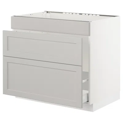 Sektion Base Cabinet For/cooktop W/3 Drawers, White Maximera/voxtorp Dark Gray, 30x24x30 "