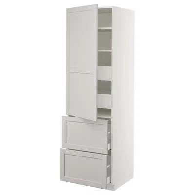Sektion High Cabinet W/door & 4 Drawers, White Maximera/lerhyttan Light Gray, 24x24x80 "