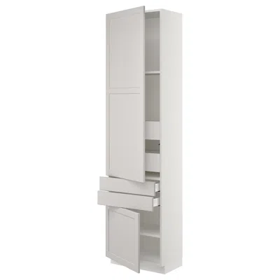 Sektion / Maximera High Cabinet With 2drs/2 Fronts/4 Drawers, White/lerhyttan Light Gray, 24x15x90 "