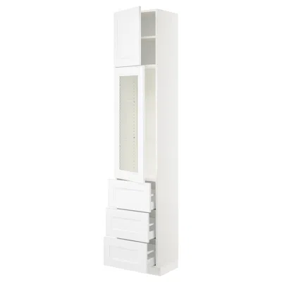 Sektion / Maximera High Cabinet With Glass Door/3 Drawerrs/1 Door, White/axstad Matte White, 18x15x9