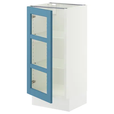 Sektion Base Cabinet With Glass Door, White/lerhyttan Blue, 15x15x30 "