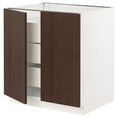 Sektion / Maximera Base Cabinet With 2 Doors/3 Drawers, White/sinarp Brown, 30x24x30 "