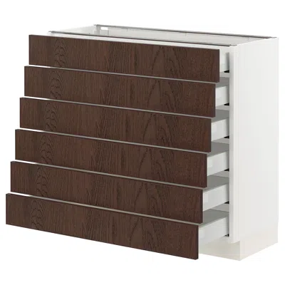 Sektion / Maximera Base Cabinet/6 Fronts/6 Low Drawers, White/sinarp Brown, 36x15x30 "