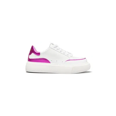 Women's Pink / Purple Off Duty White Italian Leather Sneaker With Pink Metallic Leather Finishing In Pink/purple