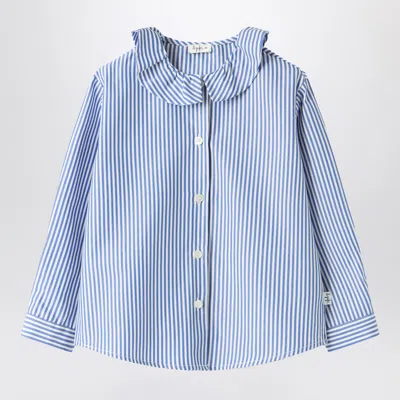 White/blue Striped Cotton And Linen Bermuda Shorts