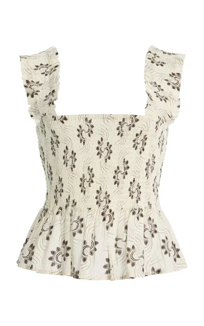 Perse Shell-detailed Printed Cotton-voile Top In White