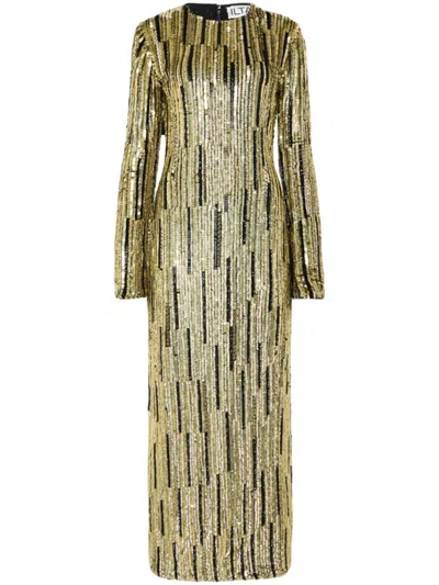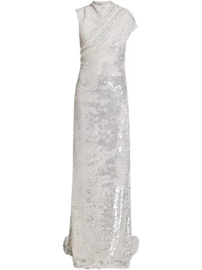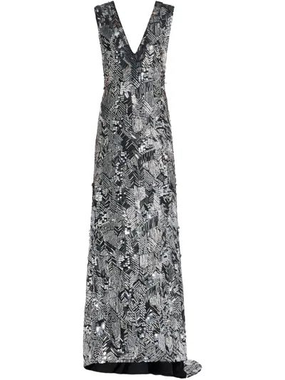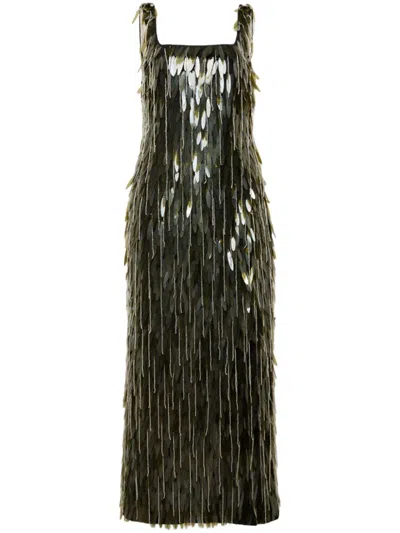 Sequinned And Beaded Halter-neck Dress In Turquoise