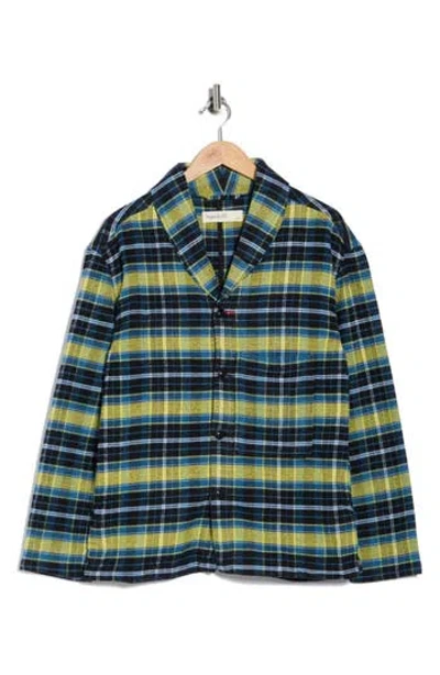 Plaid Flannel Shawl Collar Button-up Shirt In Blue