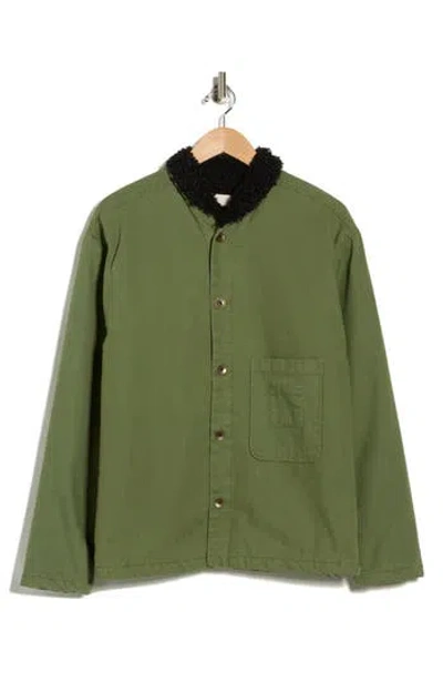 Shepherd's Organic Cotton Shirt Jacket With Faux Shearling Lining In Green