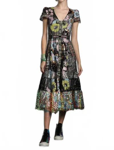 Women's Sequined Floral Party Dress In Muitl In Multi