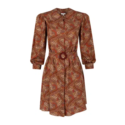 Women's Brown Hoyo Long Sleeve Printed Shirt Dress