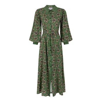 Women's Green Welel Long Sleeve Printed Shirt Dress