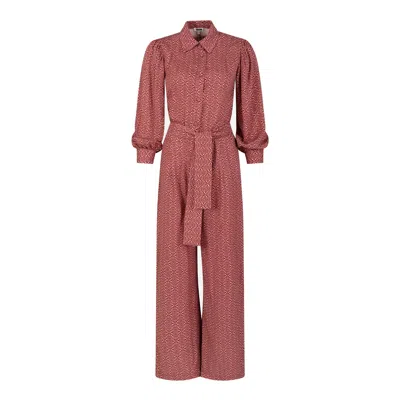 Women's Red Olmoti Long Sleeve Printed Jumpsuit