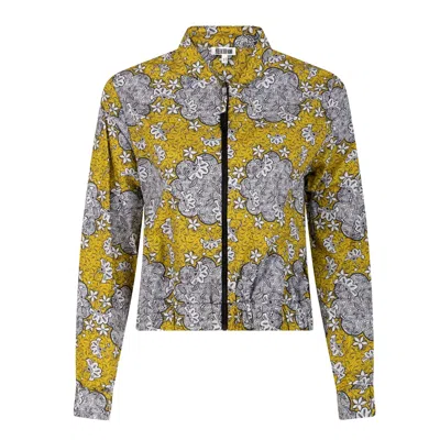 Women's Yellow Lico Floral Printed Cotton Bomber