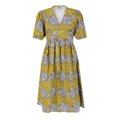 Women's Yellow Yegura Short Sleeve Printed Midi Dress