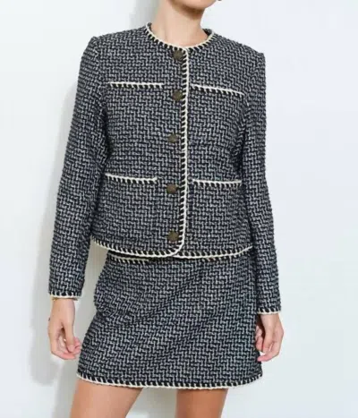 Boucle Tweed Braid Trim Jacket In White/black In Gray