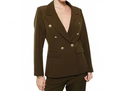 Button Double-breasted Tailored Blazer In Dark Olive In Green