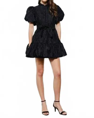 Short Sleeve Waist Rhinestone Bow Mini Dress In Black