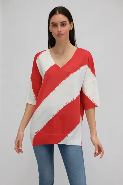 Cotton Blen Diagonal Bold Stripe V-neck Pullover In Multi