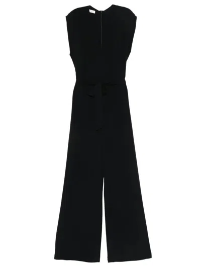 Lara Belted Jumpsuit In Silk-blend Crepe De Chine In Black
