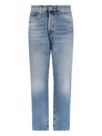 Faded Denim Trousers Featuring Belt Loops In Blue