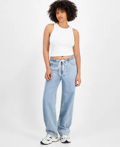 Juniors' Cotton Wide-leg Drawstring Jeans In Blue