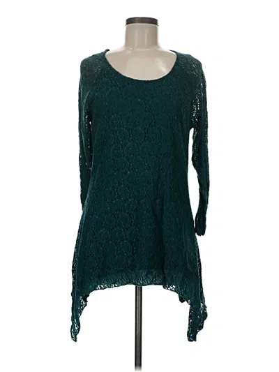 3/4 Sleeve Top Teal Scoop Neck Tops In Blue