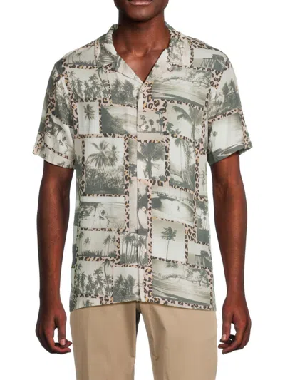 Men's Leopard Print Palm Tree Camp Shirt In Grey Multicolor