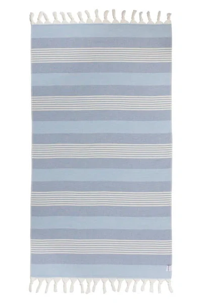 Breeze Striped Organic Turkish Towel With Soft Terry Cloth Back In Blue
