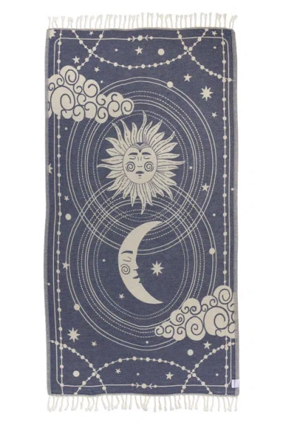 Celestial Sun And Moon Sand Resistant Organic Turkish Towel In Blue