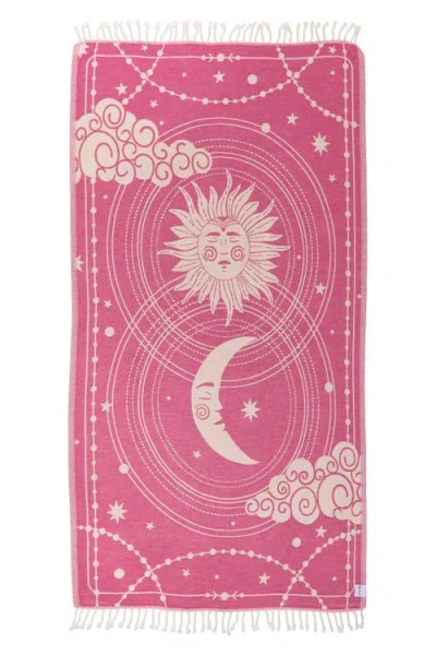 Celestial Sun And Moon Sand Resistant Organic Turkish Towel In Pink