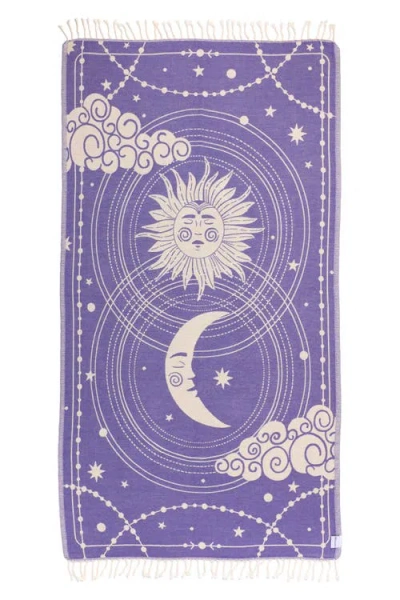 Celestial Sun And Moon Sand Resistant Organic Turkish Towel In Purple