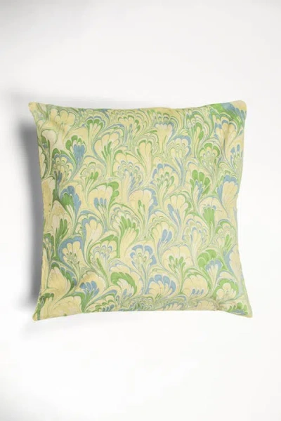Seaglass Peacock Hand-marbled Square Pillow In Green