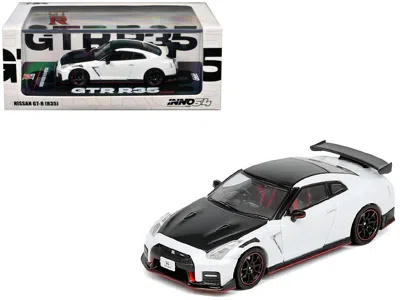 Nissan Gt-r (r35) Nismo Rhd (right Hand Drive) White With Carbon Hood And Top 1/64 Diecast Model Car