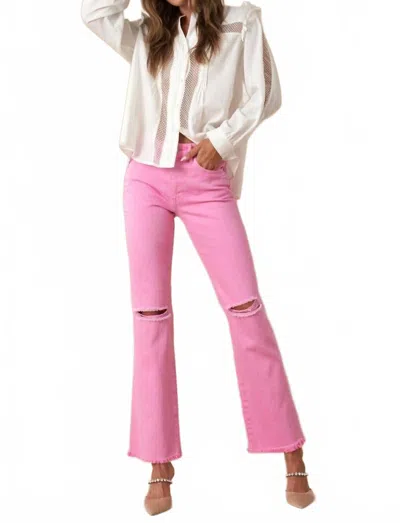 High Rise Slim Straight Jeans In Pink