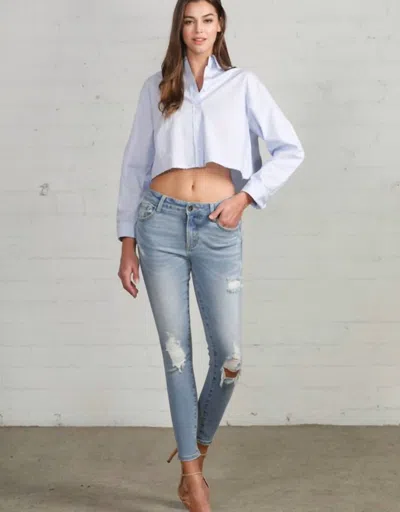 Mid Rise Ankle Skinny Jean In Light Wash In Blue