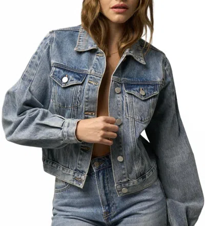 Puff Sleeve Jacket In Denim In Blue