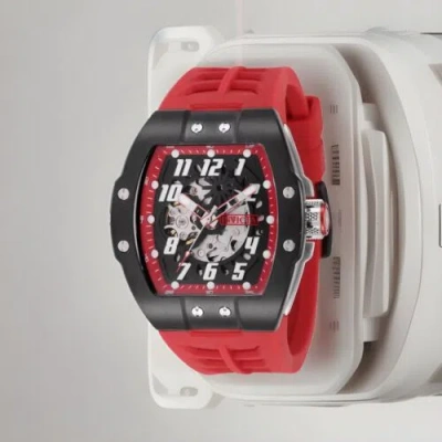 Pre-owned Men's 44649 Jm Correa Automatic 3 Hand Transparent, Red Dial Watch