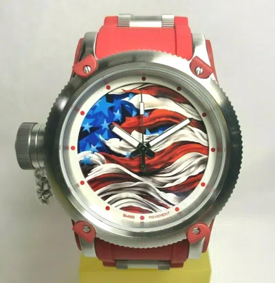 Pre-owned 16211 52mm "america" Red Russian Diver Limited Of 1111 Strap Watch